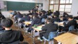 授業2年生と3年生の体育の授業です。どちらの学年もバレーボールをしていました。水分や休憩をしっかりとって試合を行いました。審判や得点係を自分たちでやり、スムーズに試合ができていました。また、試合が終わるとチームで振り返りを行いました。この振り返りを次の授業や部活動にも活かしてほしいと思います。
