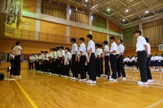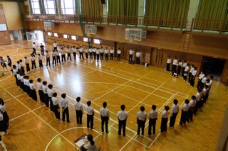 文化祭の全校合唱に向けて、初めて全校で揃って練習をおこないました。まず、男女パートに分かれて、3年生がリーダーとなって練習を進めました。