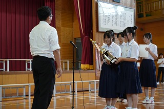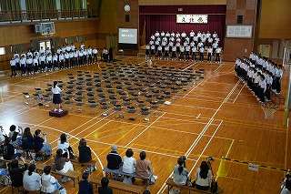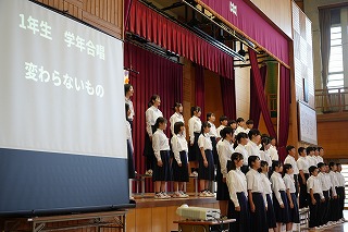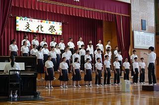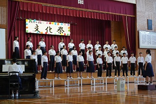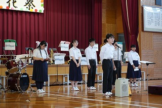 各クラスによる合唱や学年合唱に加え、今年も全校生徒で「翼をください」を合唱しました。また、美術部の発表や吹奏楽部による演奏もあり、会場にこれまでの活動の成果を披露しました。