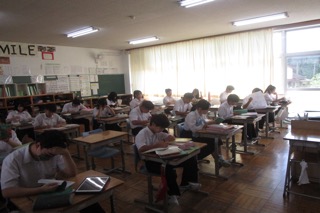 朝のテスト勉強の様子です。テストに向けての最終確認をしている様子です。