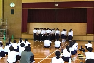 明日行われる口丹波駅伝大会に向けて、本日壮行会を行いました。壮行会では、選手が決意表明をしました。チーム蒲生野として、夏休みから互いに励まし合いながら頑張ってきた練習の成果を十分発揮できるよう精一杯頑張ります。