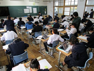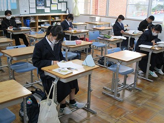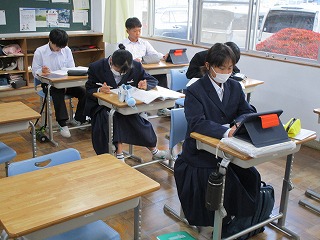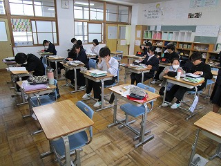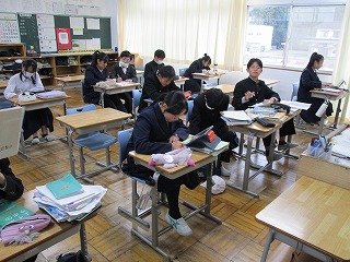 昨日からの部活動停止期間中に、放課後テスト勉強を頑張る学習会「離さん会」が開かれました。教室には多くの生徒が残り、集中してそれぞれの課題に取り組む姿が見られました。