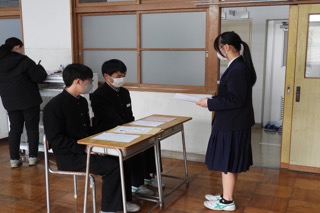 生徒会活動先週から生徒会選挙に向けて、朝の挨拶活動や各クラスへのアピール活動をしてきました。生徒会本部に9名が立候補してくれ、今日は立会演説会でした。どの立候補者も今まで以上に蒲生野中学校をよくしたいという気持ちが伝わる演説でした。