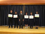 畠中町長、松本教育長、そして商工観光課の片山課長にもお越しいただき、生徒たちの発表を熱心に聞いてくださいました。閉会式では講評とともに、町長賞・教育長賞・商工観光課賞の表彰がありました。