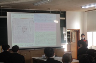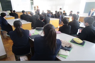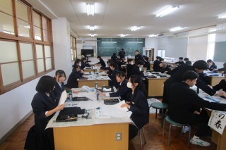 1校時は人権学習のまとめをおこないました。新聞を読み、人権の視点で気になった記事をピックアップして、感じたことや考えたことを学年で発表しました。中学校3年間で学習した人権学習を卒業した後も活かしてほしいと思います。