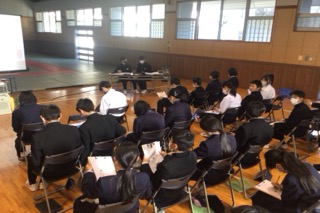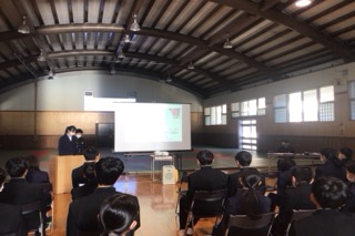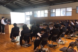 1年生は防災学習発表会を行いました。会場の準備や片付け、司会など、発表以外のことも自分たちの力で行い発表会を作り上げることができました。どの班も、「もし災害が起きたら・・・」「起こる前にできることは・・・」と具体的な場面を想像しながら学習に取り組んできたことがわかる発表でした。これからも自分たちでできることを自分たちの力でやりきれる集団を目指していきましょう。