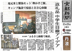 本日付の京都新聞に、3年生が12月15日に京丹波町役場で行った「京丹波町の今と未来」発表会の様子が掲載されました。地域の課題や未来について考え、提案した取り組みが紹介され、生徒たちにとって大きな励みとなりました。