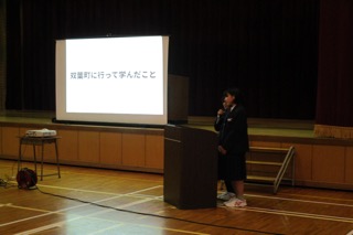 双葉町交流事業の学内発表会もありました。夏に双葉町に行き、学んだことや考えたことについての発表してくれました。
