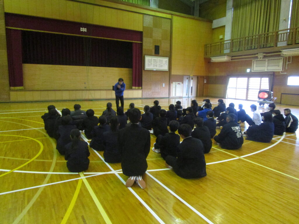 行事・各学年1時間目は学年集会でした。先生たちから3学期に頑張ってほしいことや来年度に向けて悔いの残らない学期にしようと話をされていました。