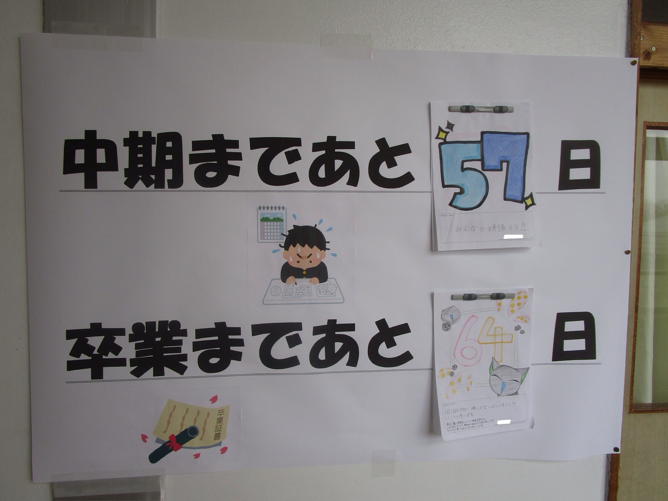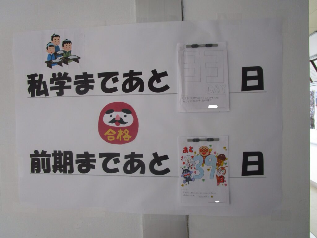 3年生の廊下には入試・卒業までのカウントダウンカレンダーが掲示されてあります。仲間と一緒にいられる残り少ない日を大切にしましょう。