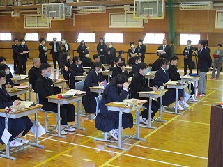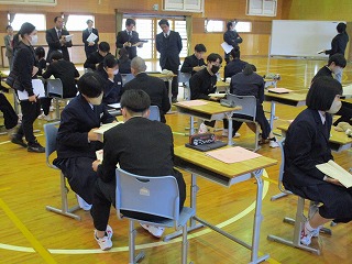 お知らせ3年1組の道徳公開授業が行われました。この日は体育館に机を運び、いつもとは少し違う雰囲気の中で授業を行いました。