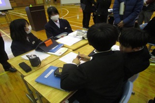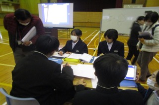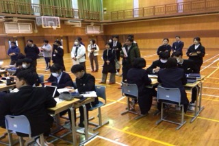未分類今日は京丹波町の小・中学校の先生方が1年生の数学の授業を参観されました。人が多く、教室には入れないので、体育館で授業をおこないました。円錐の表面積を求める授業で、グループで協力しながら求めることができました。