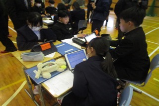 体育館で多くの人に参観してもらい緊張しながらも、表面積を求めるだけではなく、どのようにして求めたかやこの授業で学んだことを文章に書いて振り返りをして、交流をおこない、さらに理解を深めることができました。