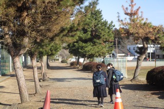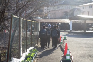 グラウンドにあった雪もすっかり溶けました。今日は下校の様子を写真に撮りました。