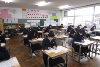今日から1・2年生の学年末テストが始まりました。一人一人が問題と真剣に向き合う姿が見られました。これまでの授業や家庭学習で積み重ねてきた努力が、発揮されることを期待しています。