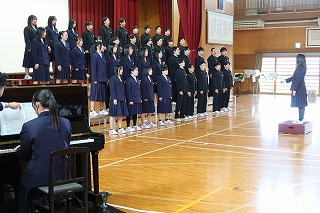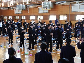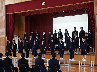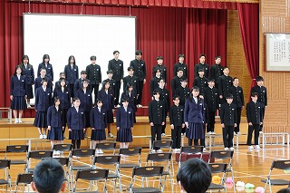 はじめに、吹奏楽部の発表がありました。続いて、在校生や教職員から、これまでお世話になった3年生への感謝の気持ちを込めたメッセージや合唱、ダンスなどの発表がありました。
