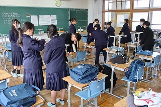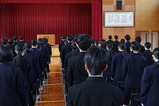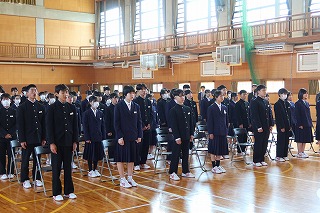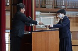 その後、修了式を行い、各学年の代表生徒が修了証を受け取りました。