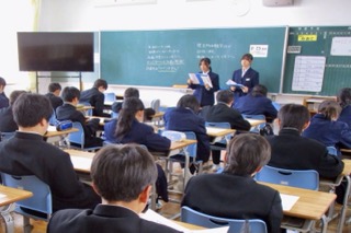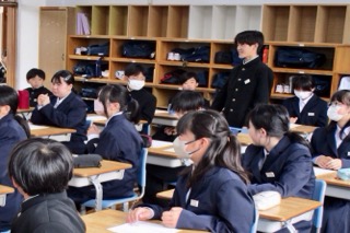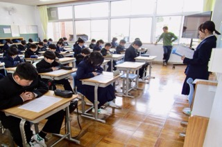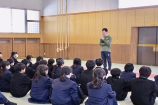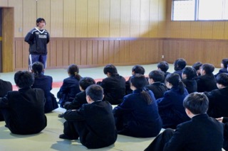 未分類1時間目は、生徒会本部の先輩たちが「学校のきまり」を教えてくれました。先輩からの説明を集中して聞いています。その後、柔剣道場で学年集会があったり、自己紹介があったりと盛りだくさんな一日でしたね。