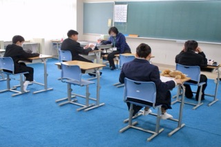 授業中学校は教科ごとに先生が変わります。入学式で紹介はしましたけれど、先生方の名前を覚えるのも大変かもしれません。教科書やノート、そしてファイルの準備など、これからしっかりと指示を聞いて毎日の授業に向かえるようにしてくださいね。