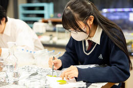 生徒たちは、ペーパークロマトグラフィー及びカラムクロマトグラフィーの実験を通じて、クロマトグラフィーの原理を学びました。また、高校ではなかなか実施ができない分析手法を経験し、とても満足していました。