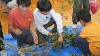 4年生の総合的な学習にの時間では、地域に飛来するコウノトリの生態を学習しています。その中で、コウノトリの巣に注目をした4年生は、自分達もコウノトリが作っている巣を実際に作ってみたいと木切れや藁などを集めています。 今日は、土台にできそ...