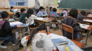 学校の様子 作品模写で版画に挑戦