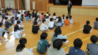 24日は、1年生を迎える会が5,6年生が中心に企画し開催されました。花道での入場、児童会長の歓迎のあいさつ、全校の前での自己紹介と好きなもの紹介、歓迎の校歌斉唱、チーム対抗・無言バースデイクイズ競争等1コマを有効に使って、とっても和やかで温...