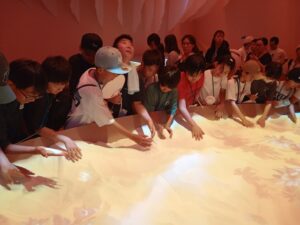 その後は「いのちのあかし」パビリオン。対話がテーマのパビリオンだったのですが、正直、内容が難しかったようでした。(旧校舎を移築したパビリオンでした。)