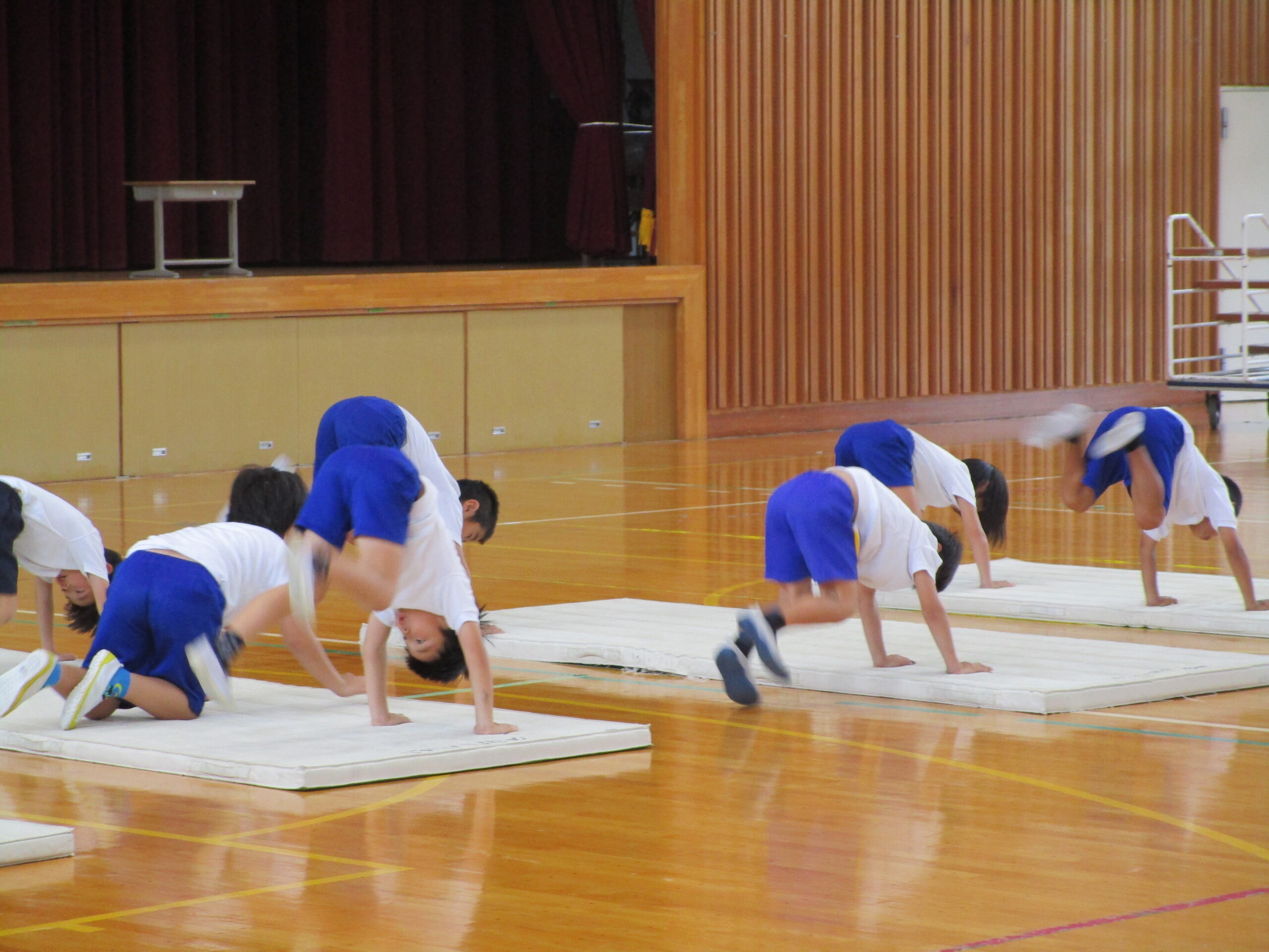 体育の時間に、「マット運動」に挑戦する子ども達を見かけました。「転がる」「逆さになる」「腕で体を支える」動きは、普段の生活の中ではなかなか経験することが少ないので少し苦戦する姿もありますが、みんなとても楽しそう!! マット運動を通して、色々な体の使い方に慣れて欲しいと思います。