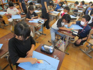 そして、教室では、版画や絵画に取り組む子ども達の姿があります。慎重に彫刻刀で板を彫り進める姿や、混色にこだわりながら色を塗り進める姿。今年はどんな作品に出合えるのか、今からワクワクしています。