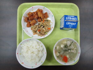 ・切干大根の五目炒め ・豚汁 ・牛乳