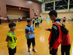 説明をした後は、チーム対抗戦となりました。振り返りの中で、「とても楽しかった」と言ってもらい、子ども達は大満足でした。