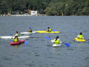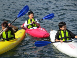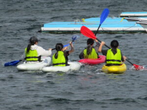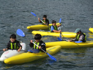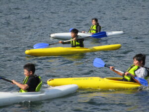 余裕が出てくると、近くの友達と楽しく話をしながら進む姿も・・・。地域にある施設を使った今回のカヌー体験。地域の方のお力を借りながらの実施となりました。最後の片づけまでバッチリできた子も多く、気持ちよく半日を過ごすことができました。
