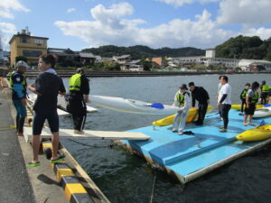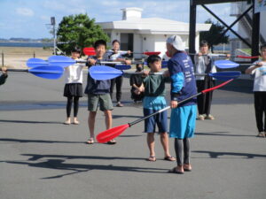 温かい日差し中、実施できたカヌー体験。少し波のある状況でしたが、子ども達はあっという間にパドルでこぐ感覚を掴み思い思いの場所までカヌーを漕いで楽しむ姿が見られました。
