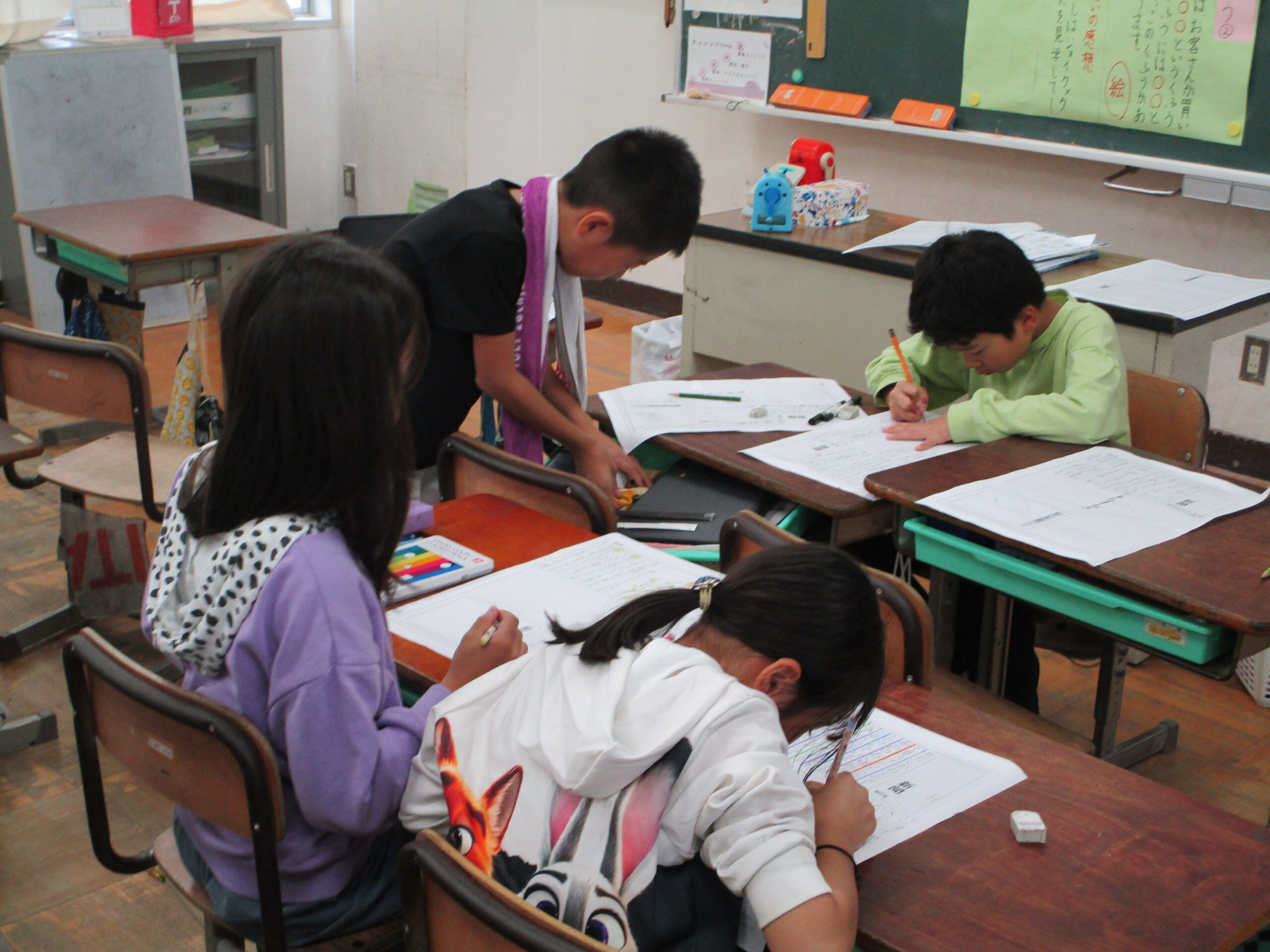 3年生が総合的な学習の時間を使い、春から取り組んでいる「地域の○○名人」。今日は、新聞づくりに挑戦をしています。