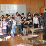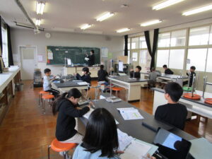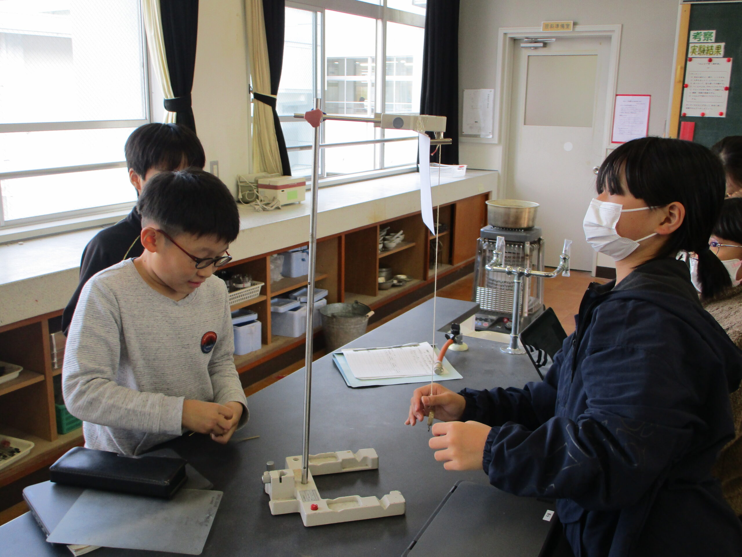 学校の様子5年生の理科。今日は「ふりこのきまり」を調べています。