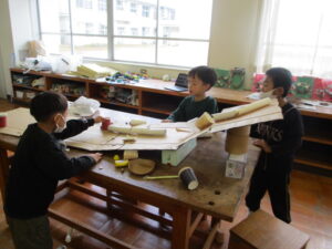 1年生の生活科・図画工作の時間を使い、秋祭りに向けた準備を始めています。秋見つけで集めた素敵な「秋」が祭りの材料です。