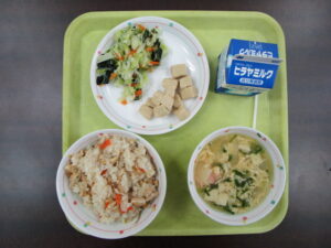 ・わかめの酢の物 ・かきたま汁 ・牛乳