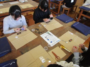 学校の様子今日のものづくりクラブでは、京都工芸繊維大学の方にお世話になり、七宝焼きに挑戦しました。
