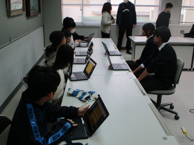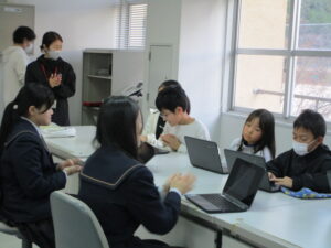 夕方、久美浜中学校にあつまった町内3小学校の児童会メンバー。後期児童会本部として、どんな取組を行っているのかを報告し交流しました。