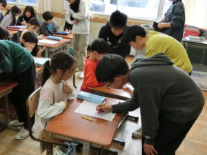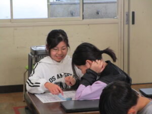いつもは、なかなか「教えて」と言えない人も、側に安心できるお兄さんお姉さんがいると心強いようで、「分からん」「教えて」と思いを伝えながらの時間となりました。