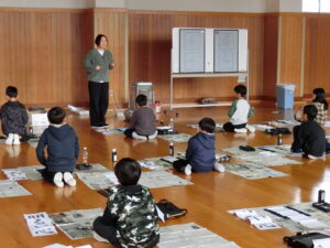 学校の様子本日は、外部講師の方にお世話になり、3・4年生の書初め指導を受けました。
