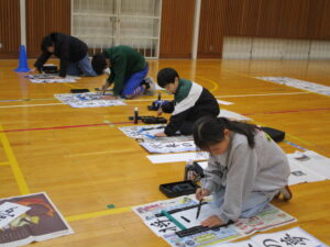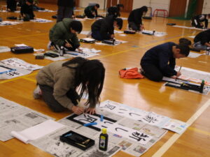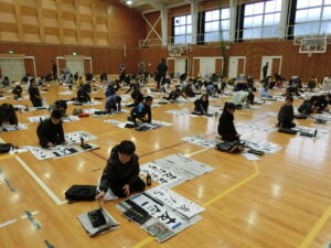 書初めには、「書の上達を願う」「一年の目標を願い、心新たにする」といった意味があるそうです。約40分間、一字一字に心の決意を宿しながら、じっくりと取り組む姿が見られました。