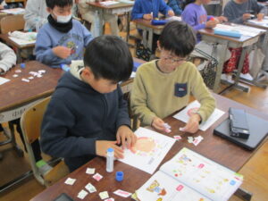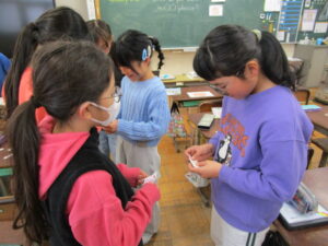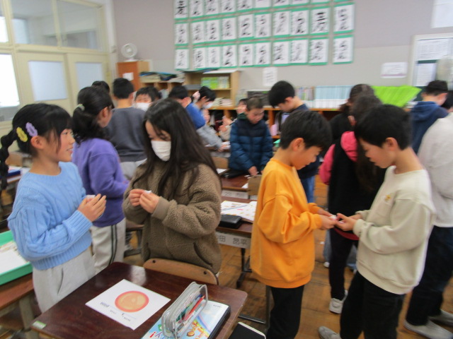 学校の様子4年生の外国語活動。「What do you want?」「○○,please.」