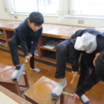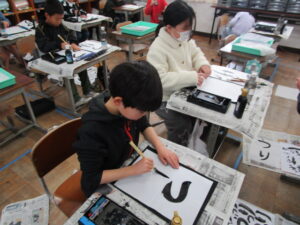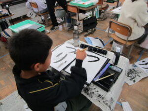 学校の様子3年生の習字。本日は「つり」。