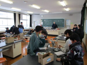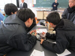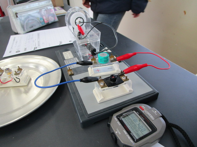 1分・・・2分・・・。「4分たったで!!」「まだまだ光っとる!」 たった30秒の蓄電で、豆電球が光り続けることに感動です。発電した電気は、コンデンサーなどに蓄えて使うことができるということを確認した6年生。次の時間は、豆電球以外のものでは、どれぐらいの時間電気が使えるのかを調べていきます。