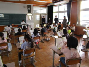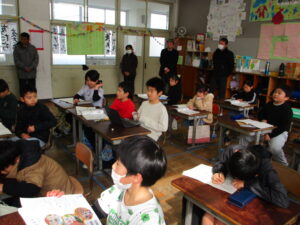 各学年の授業の様子を見ていただき、子ども達の頑張っている姿をたくさんみていただきました。3年生の社会ではノートとしてパソコンを活用する様子を、4年生の算数では方眼紙でつくった立体を使った学習を、1年生では先生の伴奏に合わせて鍵盤ハーモニカを奏でる姿を見ていただきました。全ての学年の様子をみていただきましたが、今日も参観してもらえる環境の中で張り切っていた子ども達でした。