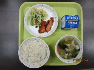 ・ひよこ豆のサラダ ・マカロニスープ ・牛乳