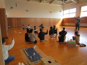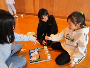 3年生の理科の時間。学習内容が全て終了したので、理科で学習した磁石の働きをつかってオリジナルのゲームや遊びのコーナーを作りました。今日は、自分達の考えたゲームを友達と一緒に楽しむ時間。磁石によって持ち上げられる重さが異なることにも注意して作ってあるので、なかなかの難しさもあり楽しむことができました。