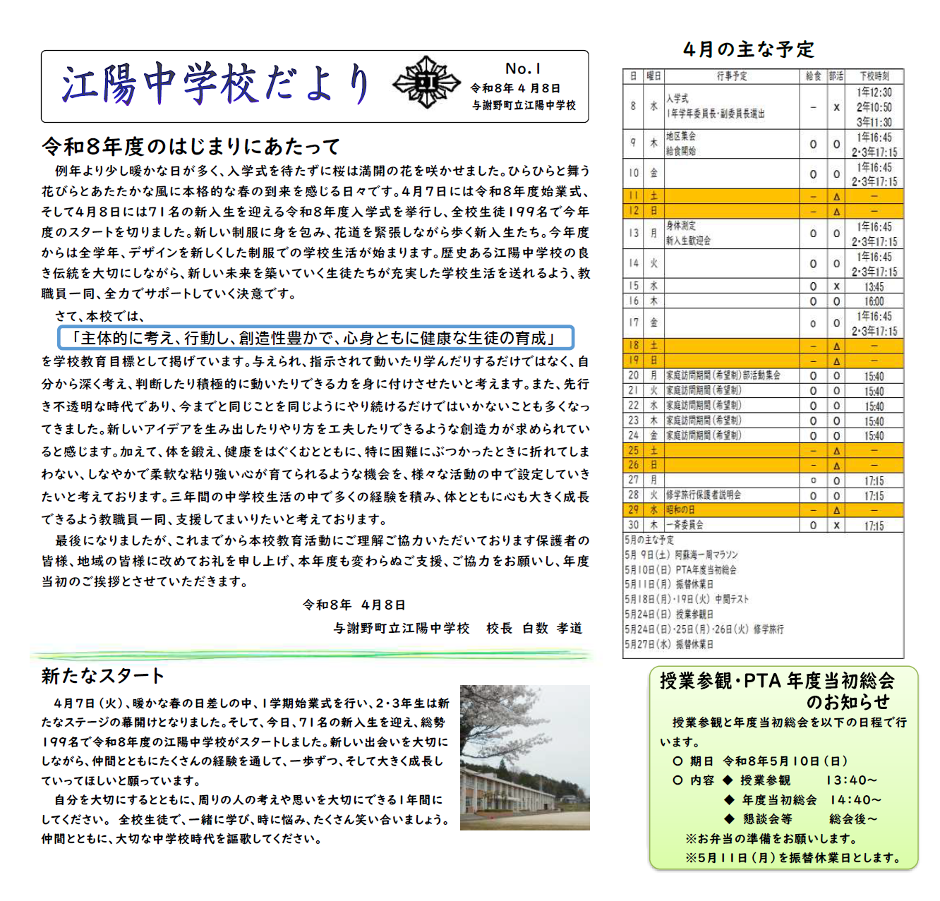 令和8年度 学校だより